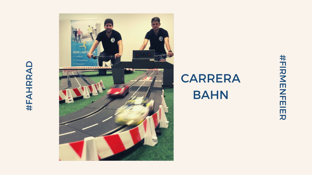 Aktivierendes und motivierendes Fahrrad-Rennen mit Carrera Autos. Perfekt als ergänzendes Bike-Modul bei Ihrer Firmenveranstaltung.