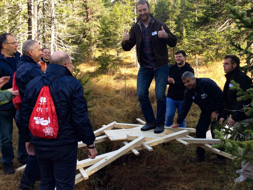 Nicht nur lustige und knifflige Aufgaben sind zu lösen. Es sind auch Geschicklichkeit beim Bogenschießen und Teamgeist bei der Leonardobrücke gefragt. Abschließend treffen die Teams auf einer Almhütte zusammen. Dort werden die Siegerteams geehrt und auf Wunsch ein Firmenlogo aus hölzernen Edelweiss zusammengesetzt.