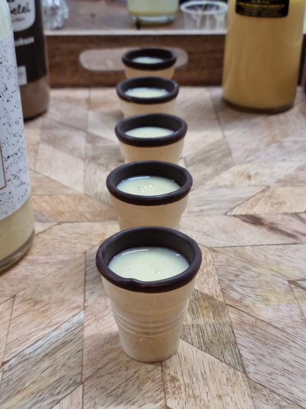 Die Eierliköre müssen im Vorfeld versendet werden. Um die Zustellung für alle gewährleisten zu können, muss die Veranstaltung sieben Tage vor Durchführung gebucht werden.