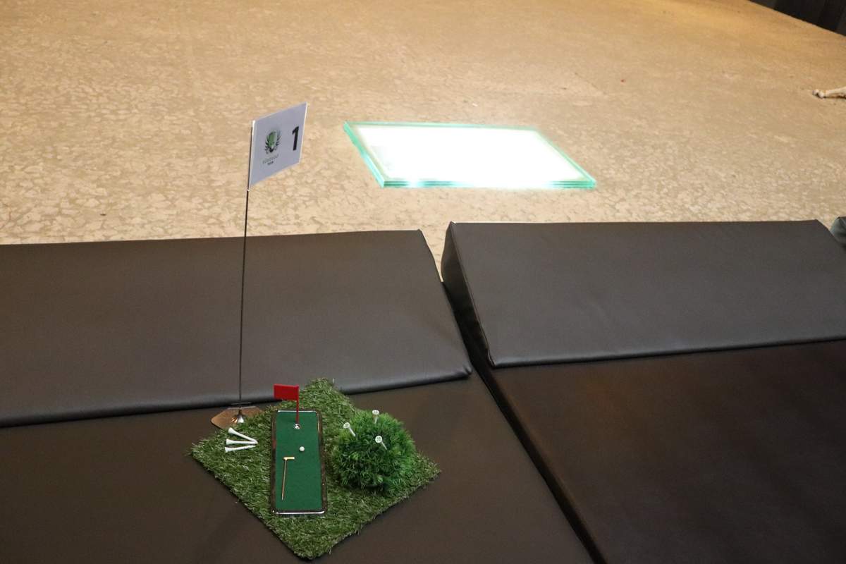 - Aufbau eines Bürogolf-Parcoursdruch die ganze Ausstellung