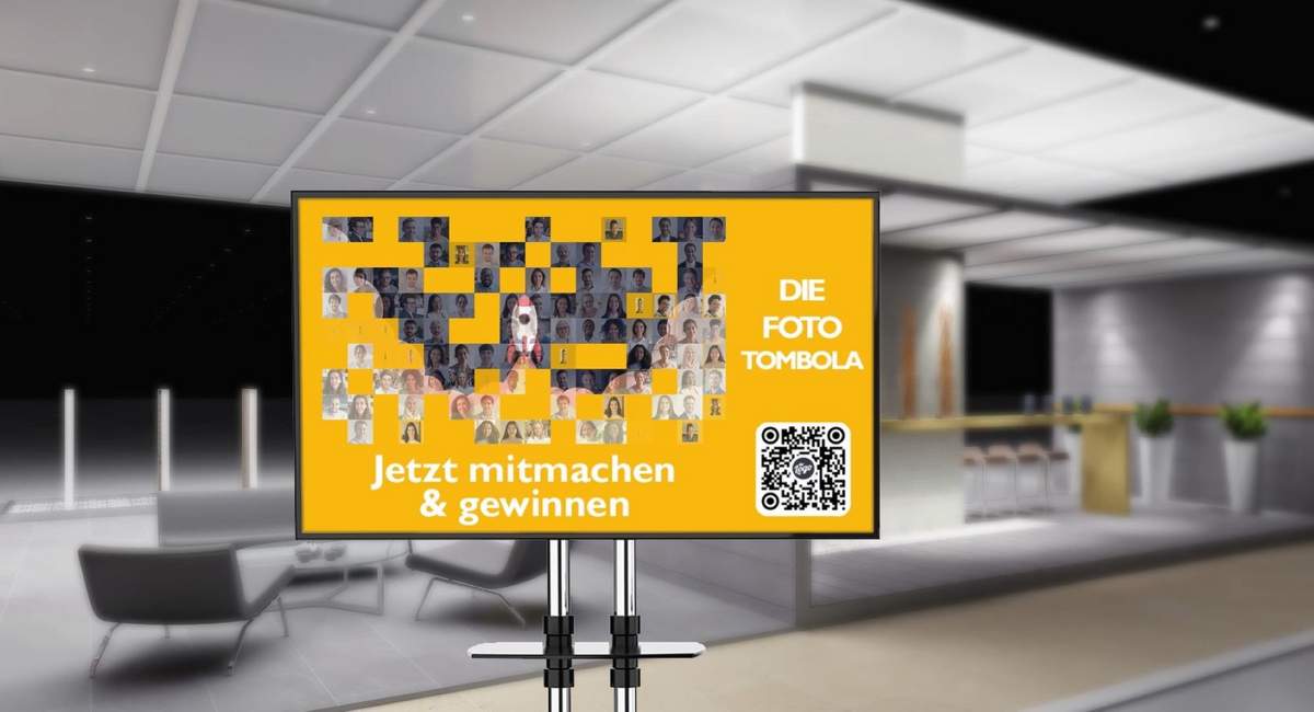 Bei diesem Paket erzeugen Ihre Teilnehmer mit dem Selfiebooster kreativen Content am eigenen Smartphone - dafür werden Ihre Gäste einfach über einen eingeblendeten QR-Code zur Upload-Seite weitergeleitet. Nach und nach entsteht aus allen Bildern ein Fotomosaik, das Ihr Key-Visual, Ihr Logo und/oder Ihre Botschaft zeigt. Aus diesem Fotomosaik werden die Gewinner per zufälliger zeitgesteuerter Verlo...sung ausgewählt. Sie entscheiden dabei, wie oft und wie viele Verlosungen stattfinden. Die Tombola-Animation können Sie auf einem Display, einem Beamer oder einer LED Wand vor Ort übertragen. Alles in allem ist die Live Foto-Tombola eine wirklich beeindruckende Attraktion, bei der neugierige Blicke und Teilnehmeraktivierung vorprogrammiert sind.