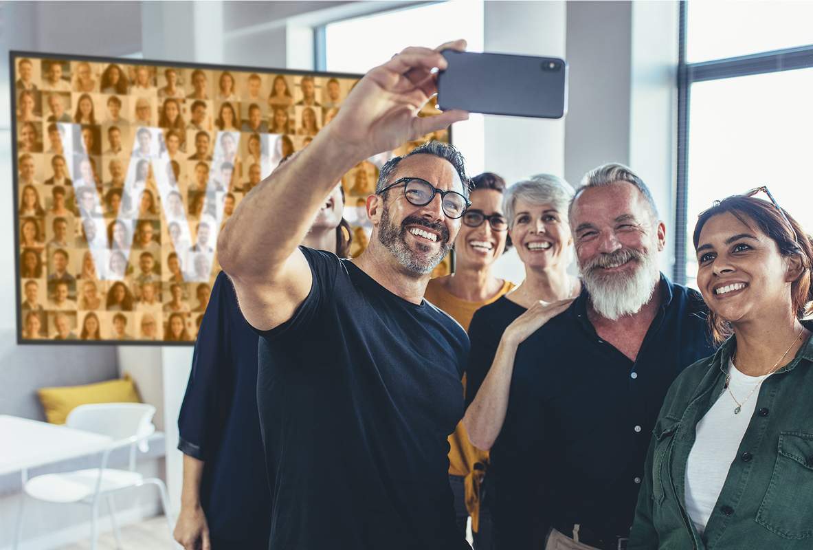 Die einzelnen Fotos entstehen dabei entweder mit unserem Selfiebooster am eigenen Smartphone oder an derFotostation, welche an sich schon ein echtes Event-Highlight ist. Anschließend wandern sie dann in Echtzeit in ein großes Fotomosaik, das Ihr Key-Visual, Ihr Logo und/oder Ihre Botschaft zeigt. Das macht jeden Einzelnen zu einem Teil des großen Ganzen und sorgt für jede Menge "Wir-Gefühl".