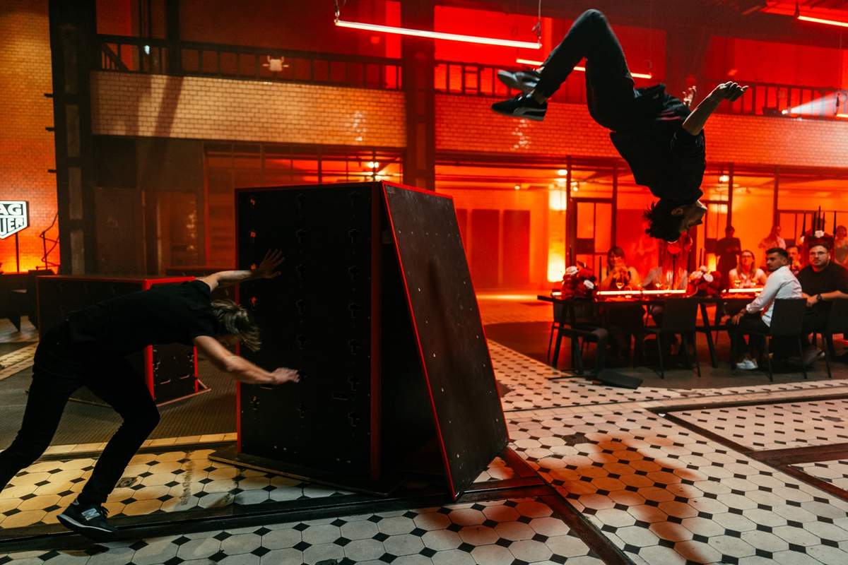 Wir haben bühnenfertige Showacts in allen Größenordnungen, aber unsere wahre Leidenschaft ist die Kreation von einzigartigen Parkour-Performances abgestimmt auf Location, Produkt und Brand-Story. Parkour lebt von der Adaption der Moves an die Umgebung. Also egal ob Autos, Möbelstücke oder XXL-Geschenkpakete - wir fliegen über alles, was sich uns in den Weg stellt!