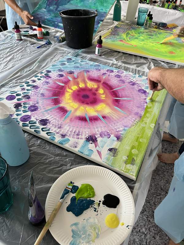 Gemeinsam intuitiv malen: Einfach frei drauflos malen. Ohne Vorgabe, ohne Motiv.