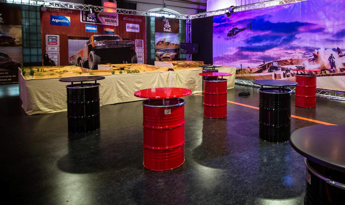 - Rallye-Möbel mit Bistrofässern, Fass-Sitzecken & Tischen, Rallyestühlen, Adventurestühlen,