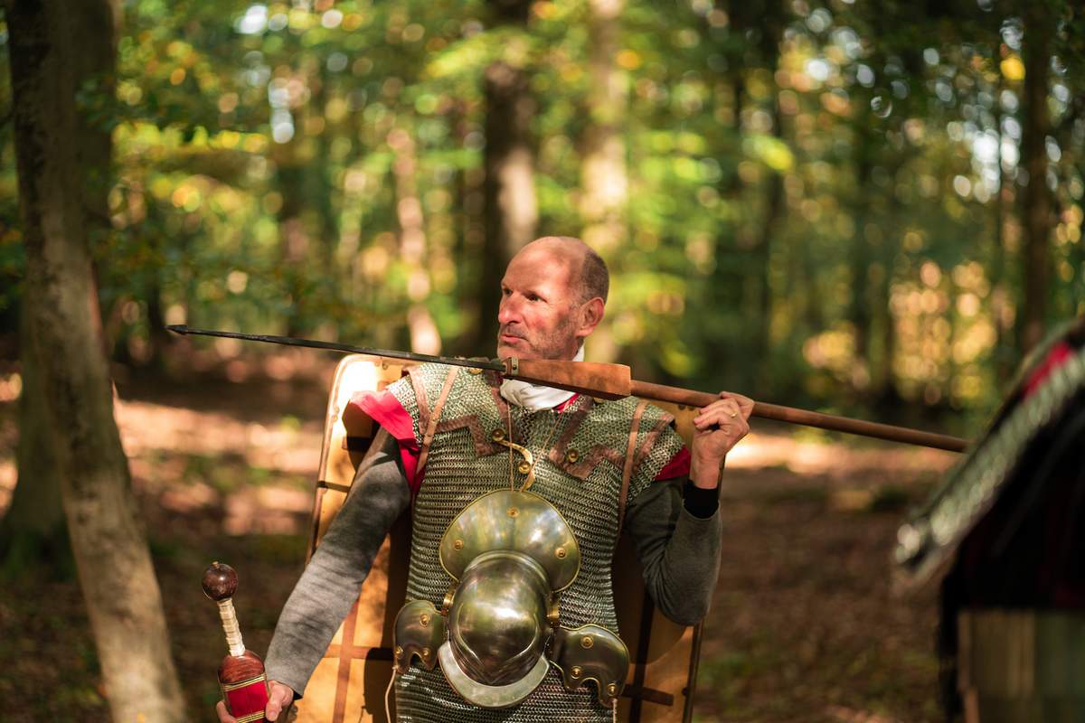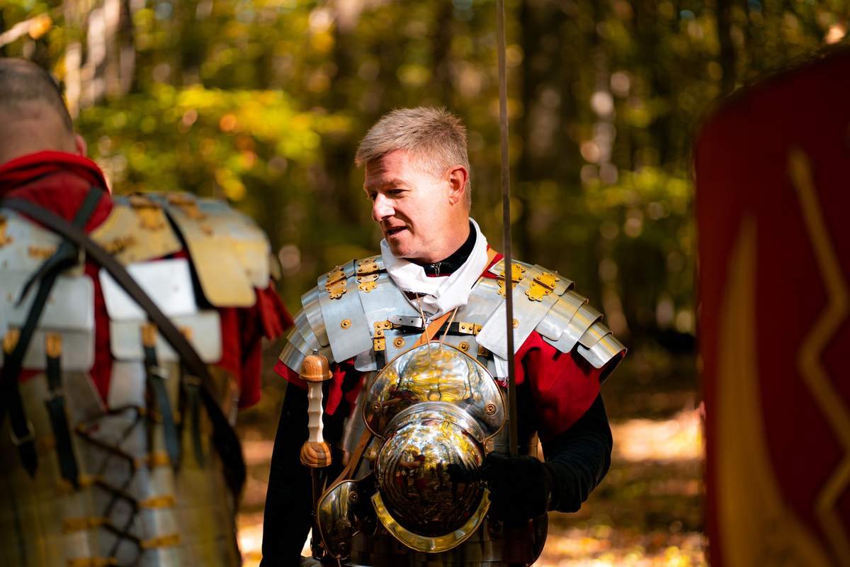 Am Veranstaltungstag erwartet Euch ein Mitarbeiter als Centurio zur sogenannten Musterung im "Hauptlager" und gibt den anwesenden Legionären einen ersten Einblick in den Verlauf des Tages. Anschließend werden Eurem Team die verschiedenen Ausrüstungsgegenstände der Römischen Legionäre und deren Handhabung kurz vorgestellt.