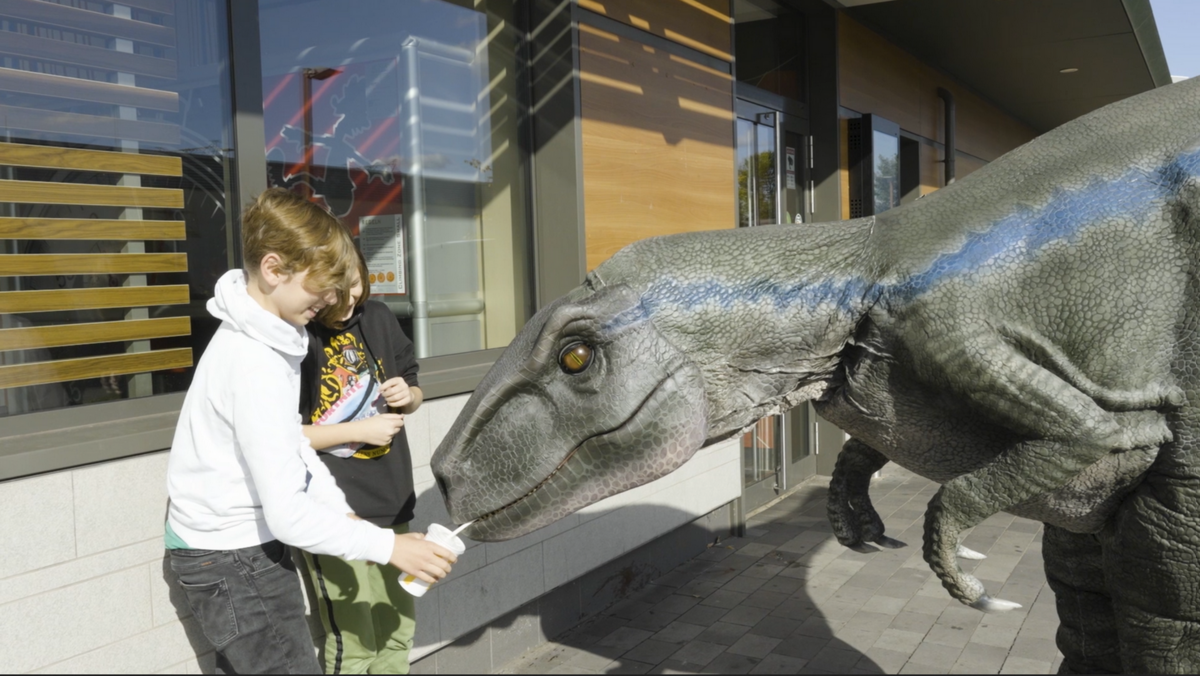 - Anschließend können Fotos mit dem Dinosaurier gemacht werden