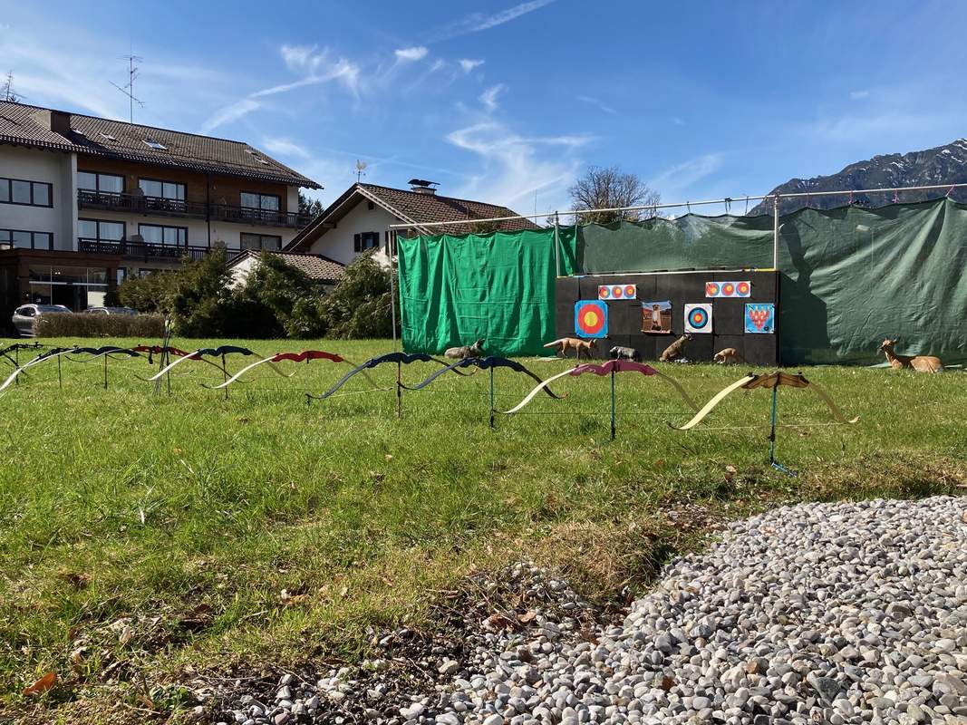 - Bereitstellung des benötigten EquipmentsSieben moderne Recurvebögen, Armschutz, Pfeile