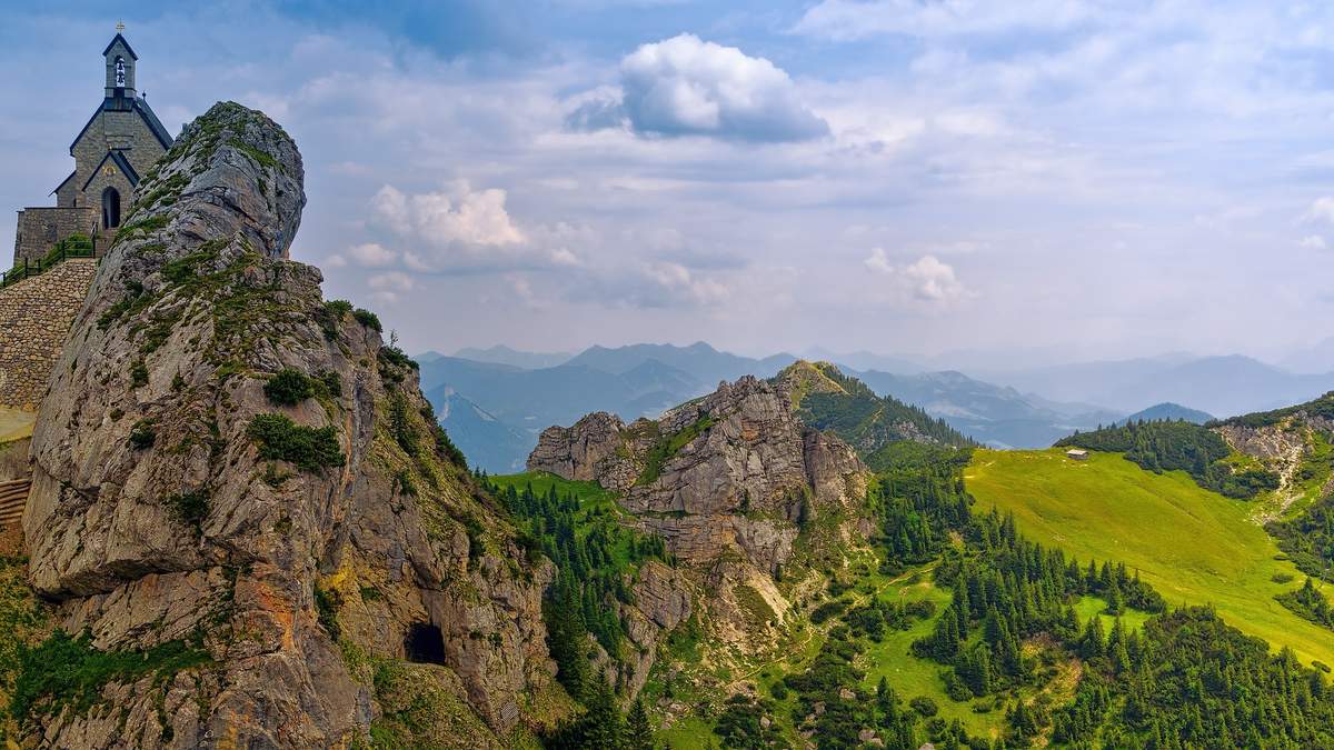 15:30 Uhr: Auffahrt mit der Zahnradbahn zum Gipfelplateau des Wendelsteins, Besuch der höchstgelegenen Kirche Deutschlands, des Geo-Parks, der Eishöhle und der Wendelsteinhöhle, sowie der Aussichtsplattform "Gacher Blick"