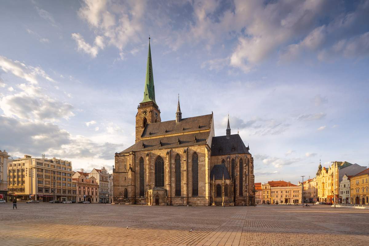 Nachmittags Stadtrundfahrt Pilsen mit deutschsprachiger Reiseleitung inkl. Eingang zur St.-Bartholomäus-Kathedrale auf dem Hauptplatz.