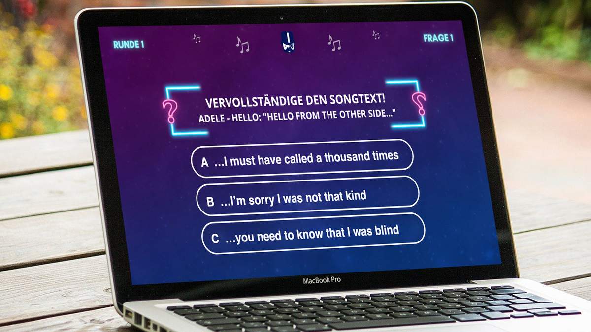 Erleben Sie mit Ihren Kolleginnen und Kollegen ein tolles Teamevent mit unserem virtuellen Musikquiz bequem von zu Hause aus.