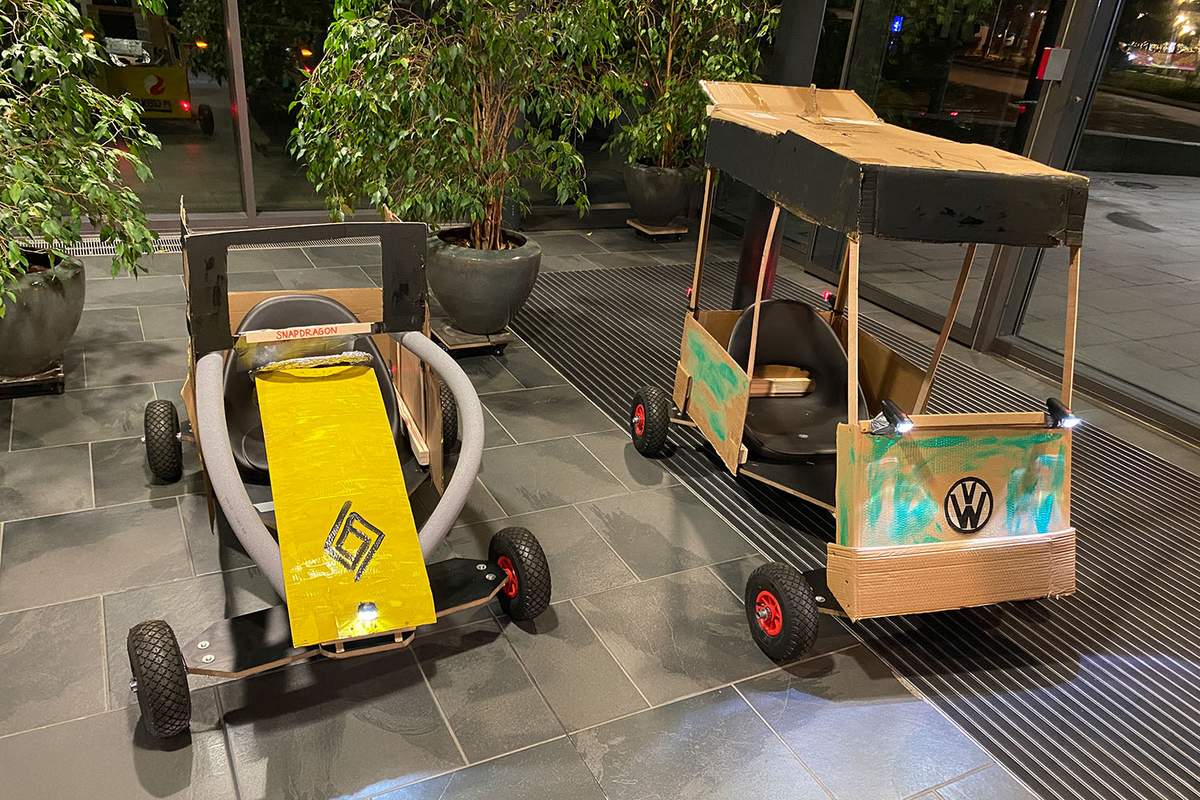 Die Seifenkisten werden leihweise für die Veranstaltung zur Verfügung gestellt. Die Kunden können die kunstreich-gestalteten Seitenwände und den vorderen Flügel der Seifenkisten als "Giveaway" mitnehmen.