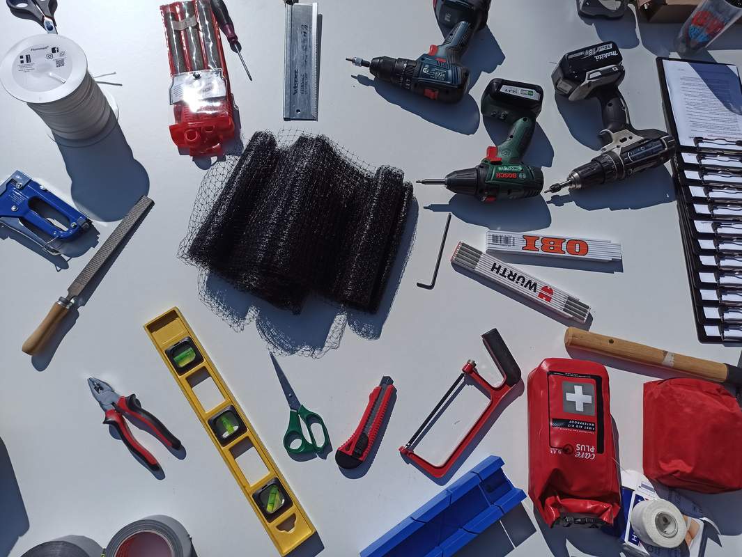 - Bereitstellung von EquipmentArbeitshandschuhe, Baumaterialien, Werkzeuge und Minigolf-Equipment werden bereitgestellt