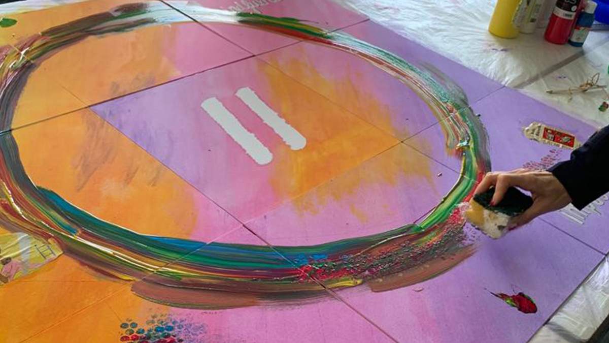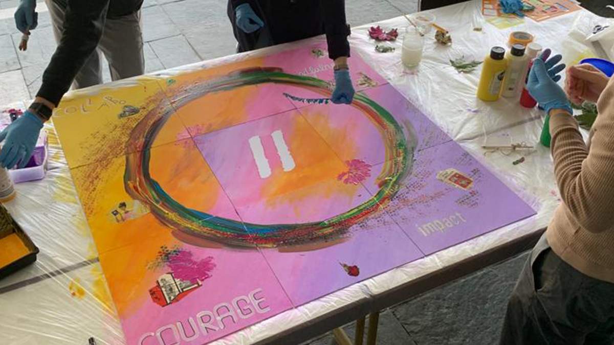 Am Ende des Events hat jeder Teilnehmer sein eigenes Bild gemalt, das Teil eines gemeinschaftlichen Kunstwerks wird.