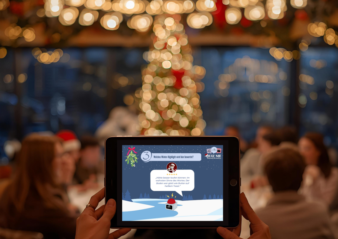 Weihnachten steht vor der Tür und draußen fröstelt es: Zeit, dich und deine Kollegen und Kolleginnen bei unserem Firmen-Weihnachtsquiz willkommen zu heißen: Taucht ein in eine Welt voller festlicher Fragen, spannender Herausforderungen und vor allem Spaß für das gesamtes Team. Bei unserem Weihnachts-Quiz geht es für die Teams um Alles, denn nur wer die Buzzer zum Glühen bringt und die meisten Punkte erspielt, kann den Sieg einheimsen.