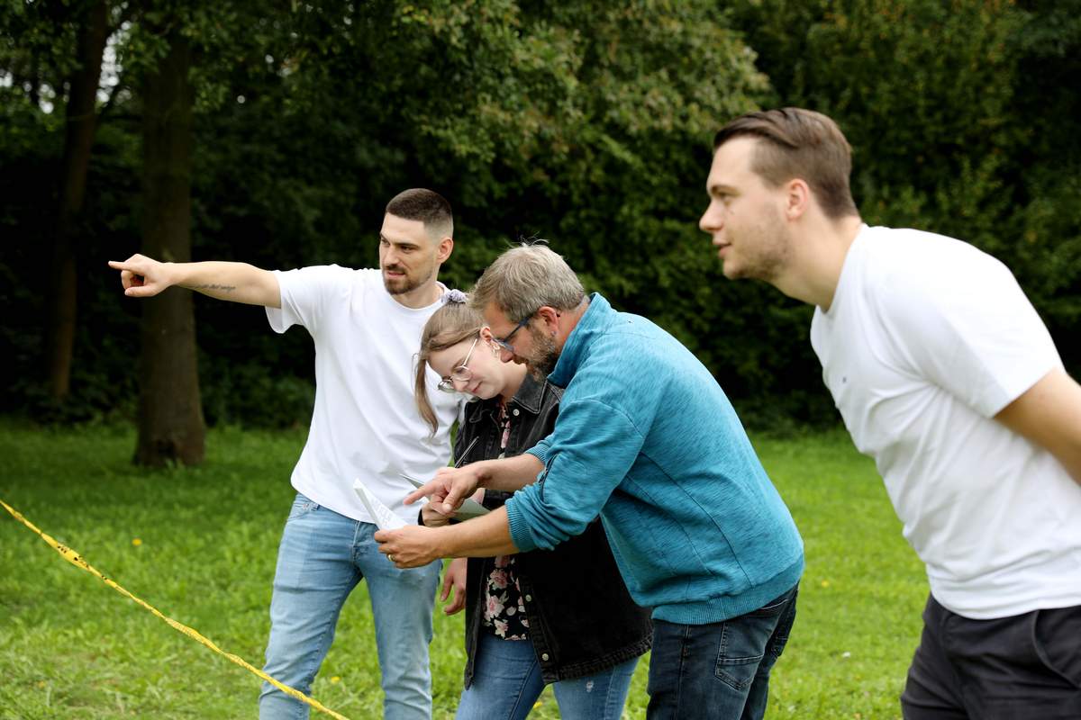 Unser Betreuer beim Tandemfahren war super. Unsere Spielleitung beim Münsterländer Fünfkampf hat unserer Meinung nach den Job verfehlt (chaotisch, unbeholfen, planlos, unlustig und nicht in der Lage eine Stoppuhr zu bedienen) - was dem Gesamteindruck von unserem Tag jedoch keinen Abbruch getan hat. Das Essen war sehr lecker und gut organisiert. Bei den Spielen hätte man vielleicht mit ein paar kleinen Ergänzungen mehr Pepp in die Sache bringen können - hat aber trotzdem Spaß gemacht. Wir denken zudem, dass ein Schiedsrichter pro Gruppe (oder bei großen Gruppen halt auch 2-3) die bessere Wahl ist als Gruppen (die naturgemäß nicht unbedingt auch miteinander harmonieren) zusammenlegen.