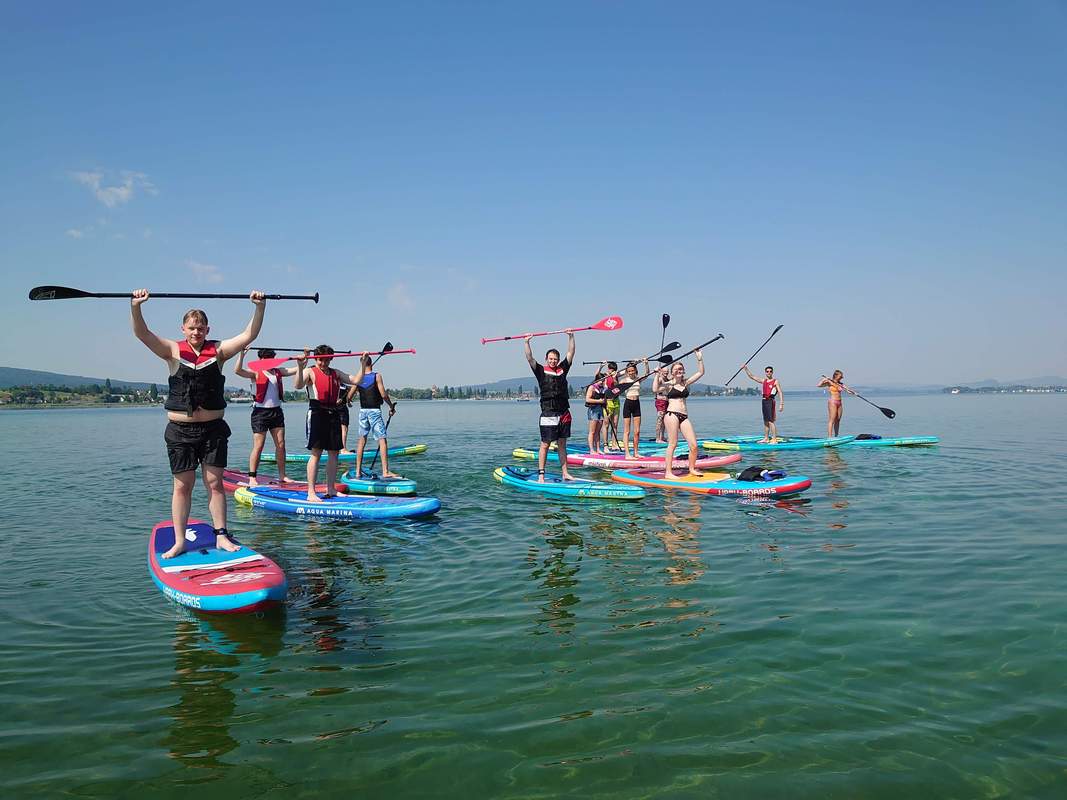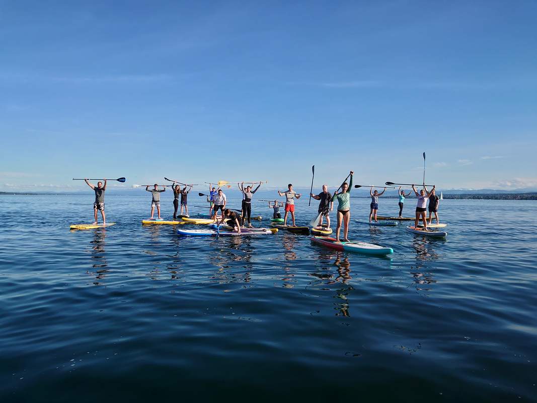 Gemeinsam stark auf dem Wasser: Stand Up Paddling Teambuilding an unserem Bodensee-Standort. Stärken Sie den Teamgeist, während Sie gemeinsam auf dem Board balancieren und die idyllische Umgebung genießen.