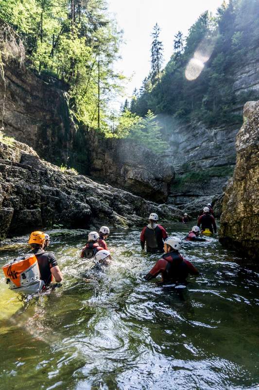 Für dieses Abenteuertour sind lediglich Schwimmfähigkeiten, Badekleidung und wassertaugliche (knöchelhohe) Schuhe* mit gutem Profil (im Idealfall Bergschuhe, Wanderschuhe, Trailrunning Schuhe etc.), die nass werden dürfen, nötig.
