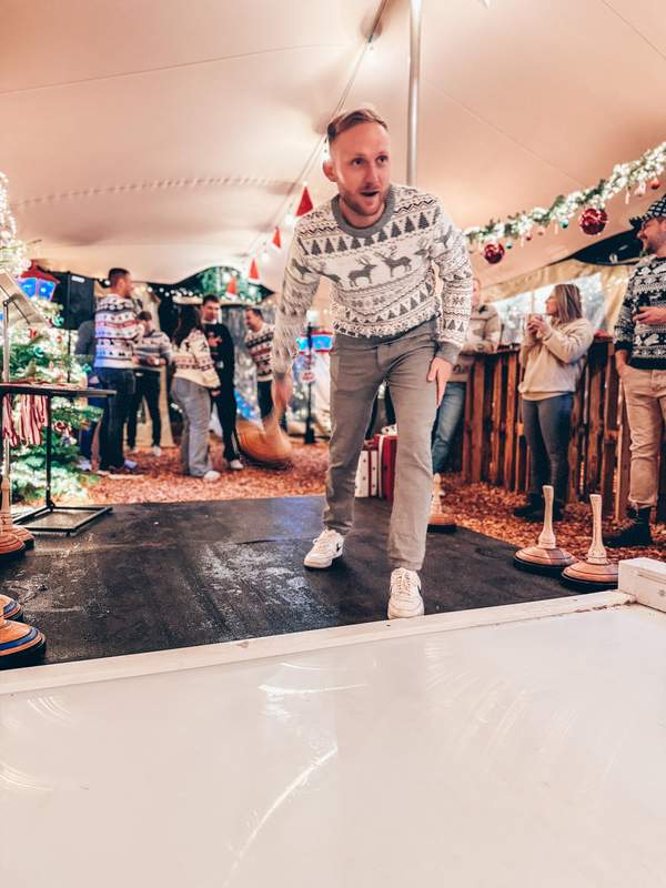 Jedes Team muss Ihren Teamgeist beim Ploppen von Flaschen oder Erraten der weihnachtlichen Geschenke der Wichtel beweisen. Bei dem praktischen Mini-Curling wird die interne Kommunikation gestärkt und eigene Teamstrategie entwickelt. Jeder liebt Geschenke, doch wie sehr überwiegt der Wille zu Gewinnen und die Absprachen im Team für das verrückteste Einpacken der Geschenke?