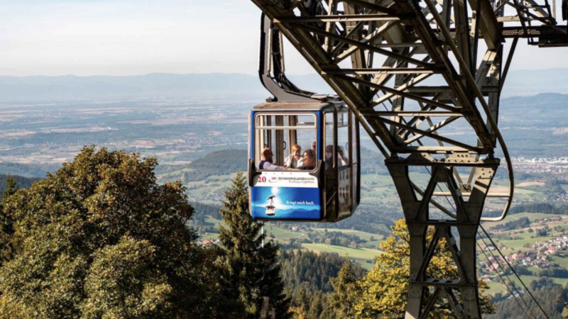 Schauinslandbahn: Eine kurze Fahrt bringt Sie zur Talstation, von wo aus Sie mit der Bahn hinauf auf 1200 Meter fahren. Genießen Sie die spektakuläre Aussicht und vielleicht auch unsere kulinarische Auffahrt, bei der Sie während der 20-minütigen Fahrt köstliche Leckereien genießen können.