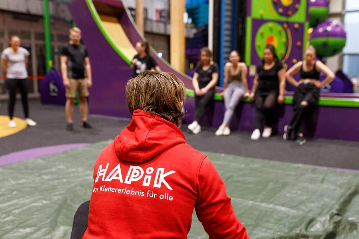 - SicherheitseinweisungIn der 30-minütigen Sicherheitseinweisung lernen Teilnehmende den Umgang mit dem Sicherungssystem und die wichtigsten Kletterregeln für ein sicheres und selbstständiges Klettererlebnis.