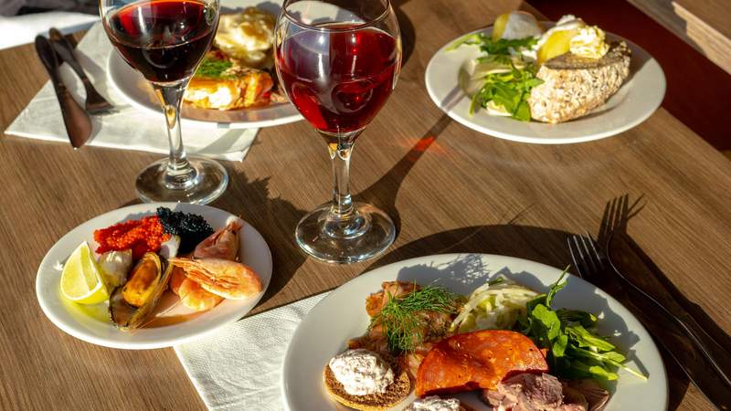 Genieße ein vielfältiges Buffet mit finnischen Spezialitäten, aber auch veganen und vegetarischen Angeboten. Alkoholfreie Getränke, Wein und Bier sind während des Essens bis einschließlich 20:00 Uhr inklusive.
