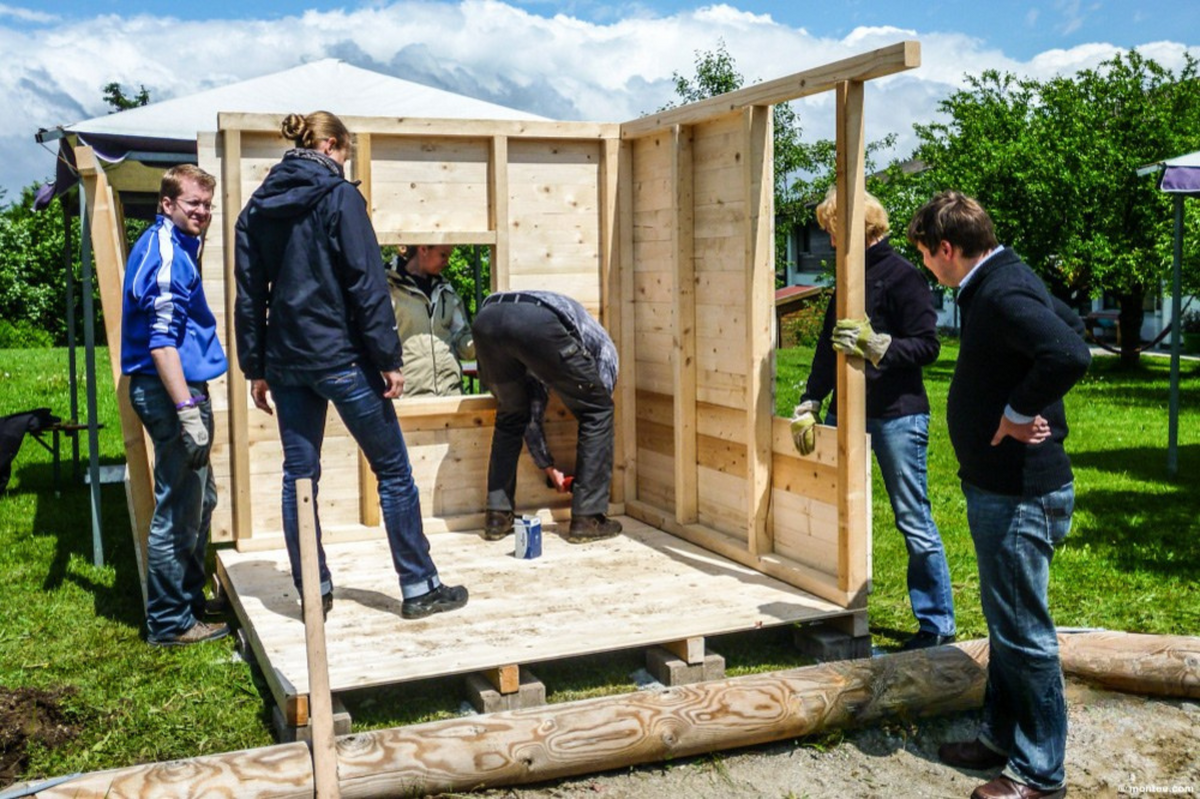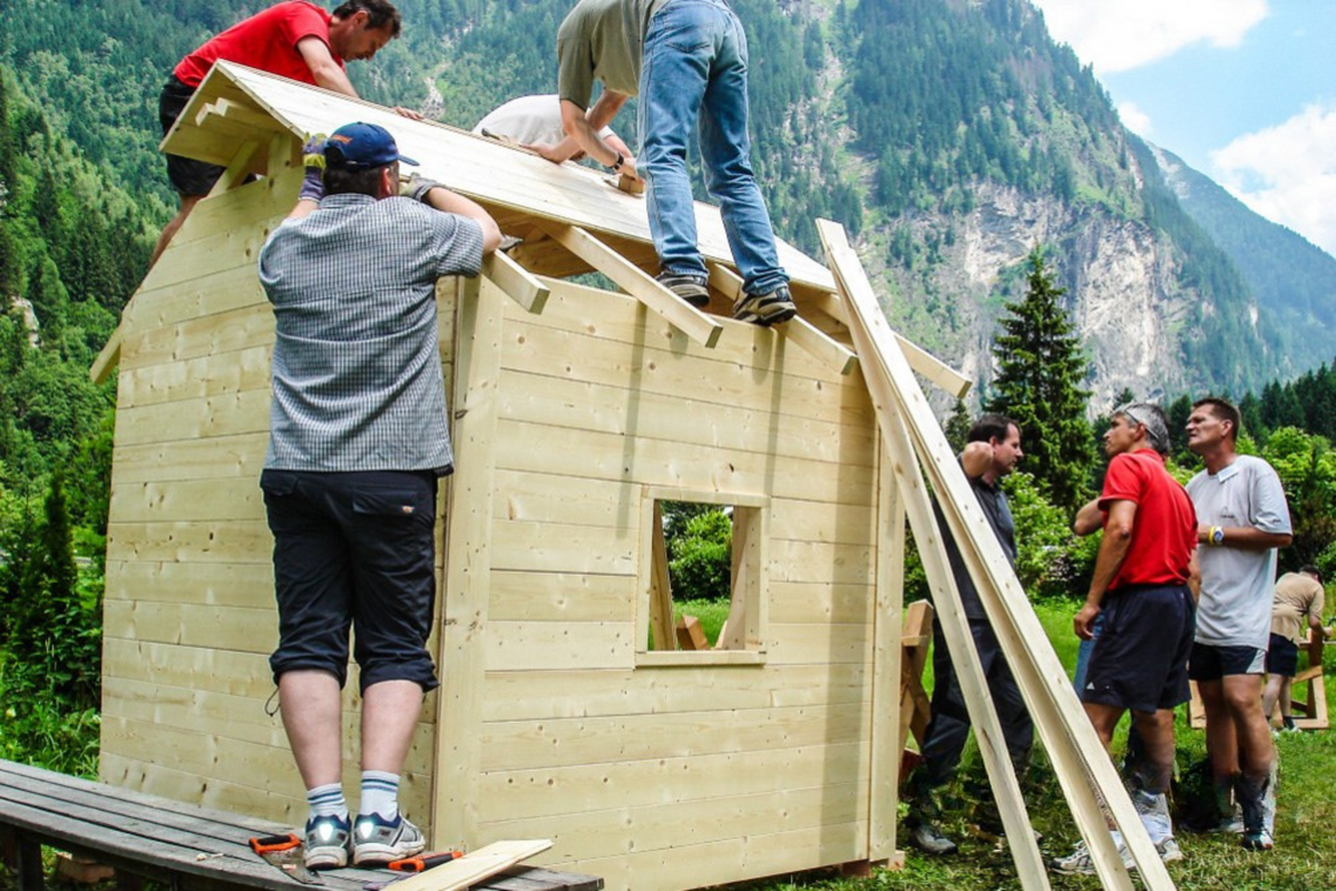 Beim Hüttenbau-Event planen und errichten die Teilnehmer in Teams vollwertige Spielhütten aus Holz. Der Fokus liegt auf gemeinsamer Planung, handwerklicher Umsetzung und koordinierter Teamarbeit. Die gebauten Hütten verbleiben im Besitz des Unternehmens und können im Anschluss an soziale Einrichtungen übergeben werden.