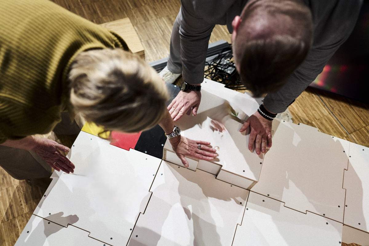 - Gemeinsamer Bau einer Bühne aus einzelnen Puzzleteilen unter Anleitung eines fachkundigen Teams