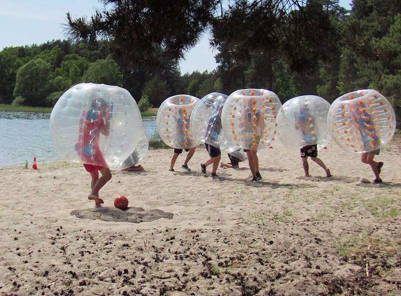 Um Bubble Soccer zu spielen, ist eine größere Wiese, ein Strand oder ein Beachvolleyballfeld erforderlich.