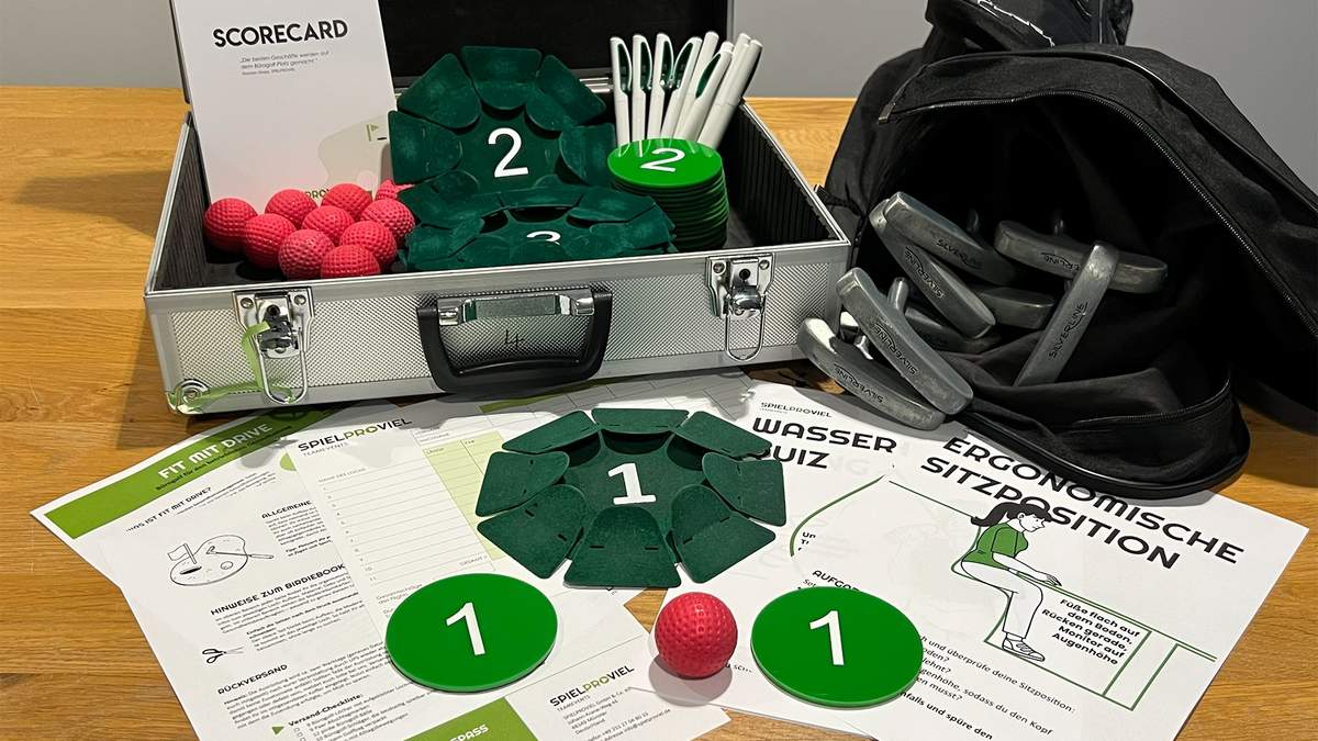 - Das Bürogolf-Turnier mit unserer Mietausrüstung kann sowohl ein Bestandteil, als auch ein alleiniges Event im Rahmen des Gesundheitsmanagements sein. Das Paket gibt es auch als betreute Variante.