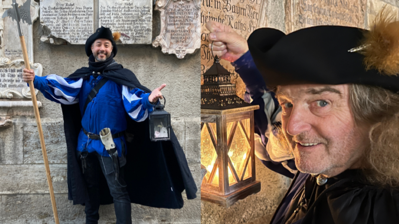 Eine besondere Stadtführung! Wenn München schläft, ist er unterwegs: Gehen Sie mit dem Nachtwächter auf eine abendliche Runde durch die Altstadt und erfahren Sie, wie es früher in München zuging.