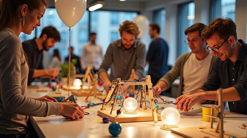 In kleinen Gruppen stellen sich die Teilnehmenden einer kreativen Herausforderung: Aus zahlreichen Bauteilen entsteht eine funktionierende Kettenreaktion – eine Impulskette, die mit nur einem Auslöser eine ganze Abfolge von Aktionen ins Rollen bringt. Dabei wachsen die Teams zusammen, bauen Silos ab und entdecken neue Perspektiven auf das gemeinsame Arbeiten. Innovative KI trifft auf bewährte Technik – für Ihre Kettenreaktion der Zukunft Für die Kettenreaktion KI haben wir eine speziell entwickelte Künstliche Intelligenz integriert, die unsere erfolgreichen Formate Kettenreaktion XXL und Kettenreaktion 4.0 auf ein neues Level hebt. Dabei setzen wir auf eine smarte Kombination aus modernen Technologien und klassischen Materialien: Mechanische Elemente wie Rohre, Kugeln, Rollen und Holzbauteile treffen auf elektrische Komponenten wie Motoren und Lichteffekte. Individuelle Lösungen für Ihr Team Damit Kettenreaktion KI optimal zu Ihren Zielen passt, gestalten wir das Format flexibel nach Ihren Wünschen – ob inhaltlich, zeitlich, sprachlich oder in Bezug auf den Veranstaltungsort. Ihre Anforderungen stehen für uns an erster Stelle – wir schaffen ein Erlebnis, das genau zu Ihrem Team passt. Ergänzt wird das Setup durch eine breite Auswahl an Werkzeugen, die wir Ihnen gerne zur Miete bereitstellen.