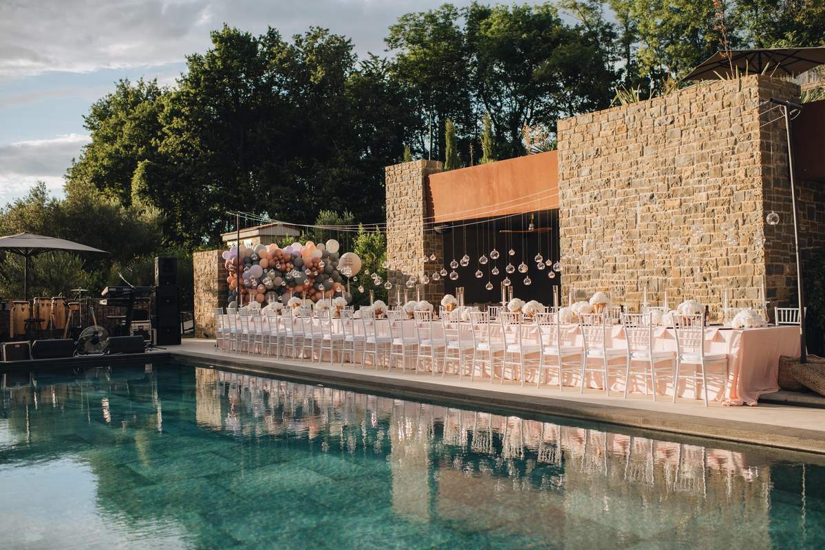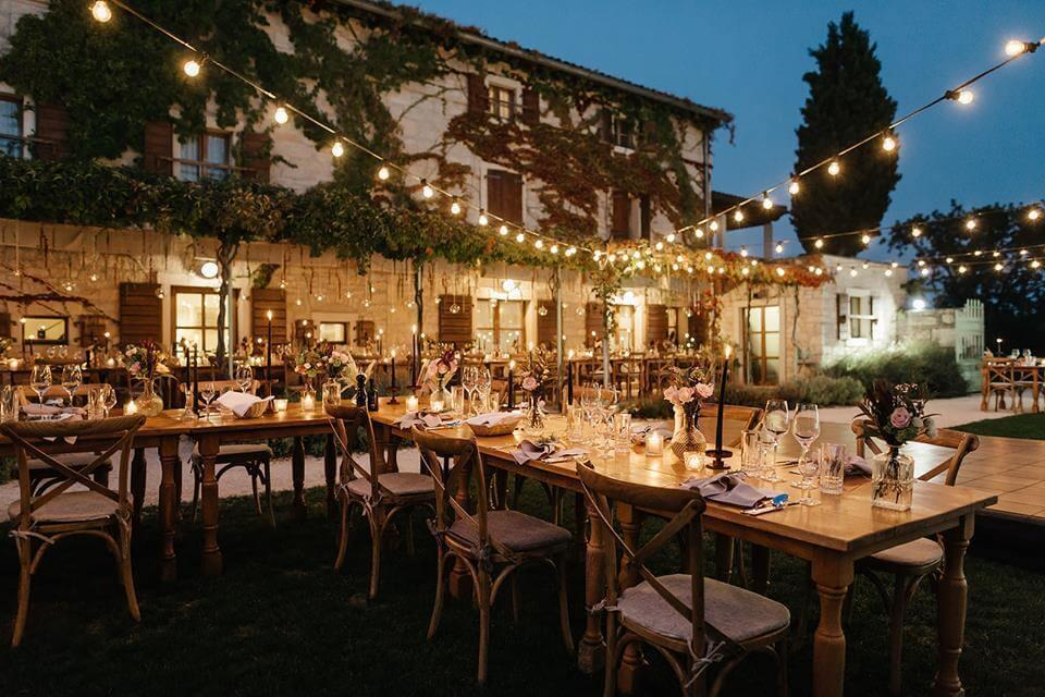 * Elegantes Outdoor-Setup mit Lichterketten