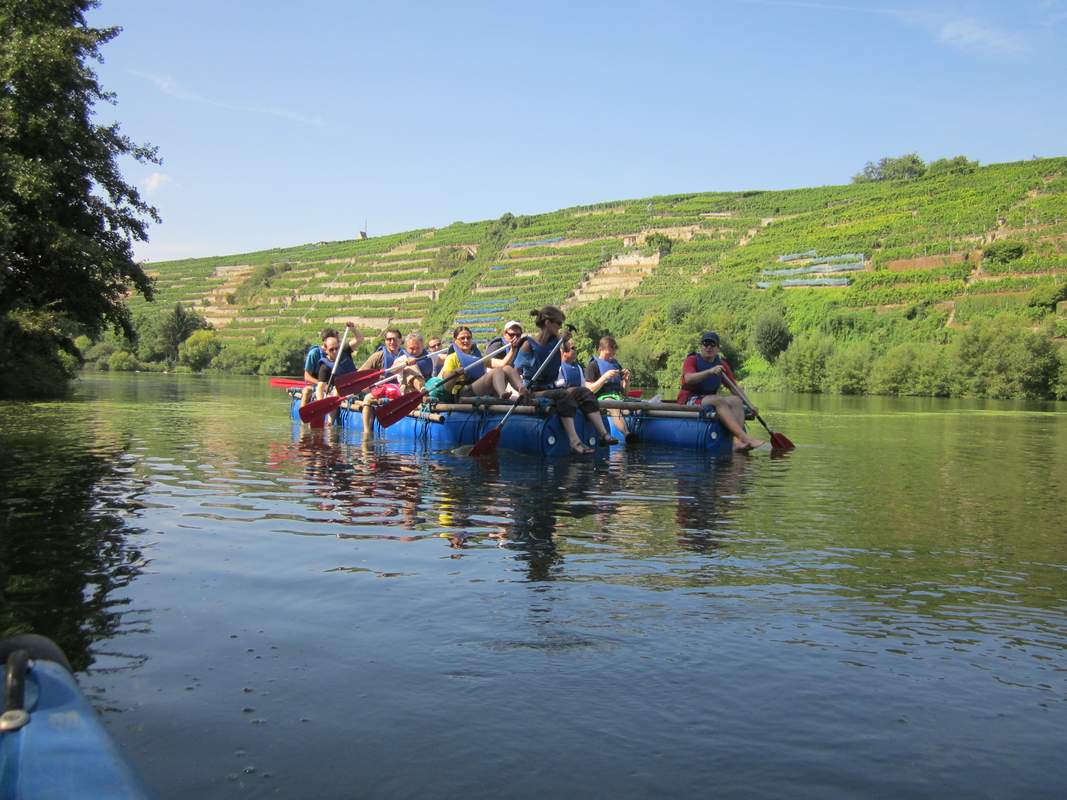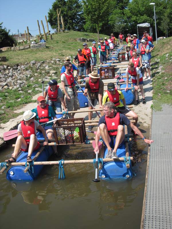 12.45 Uhr Start mit der abenteuerlichen Floßfahrt auf dem Neckar
