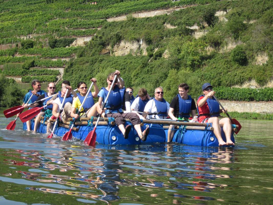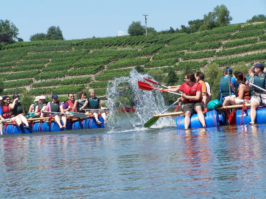 Mit einem selbstgebauten Floß den Neckar erkunden – das wird ein unvergesslicher, aktiver Betriebsausflug! Floßbau und Floßfahrt - Sie werden begeistert sein!