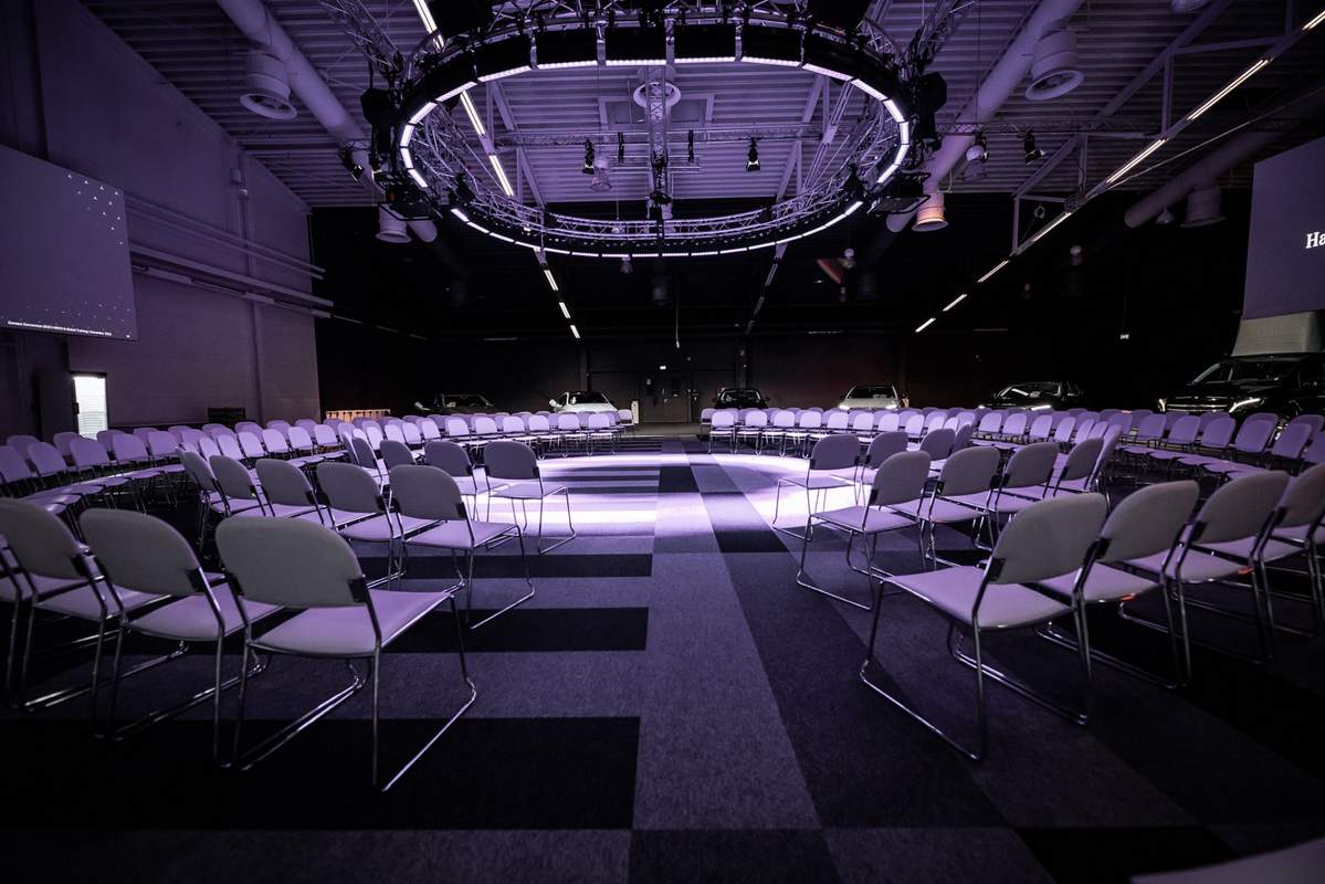 Hochmoderne Medientechnik: LED-Wände, Projektoren, Displays