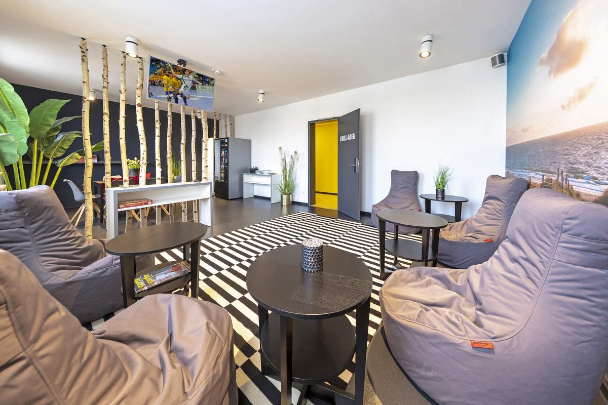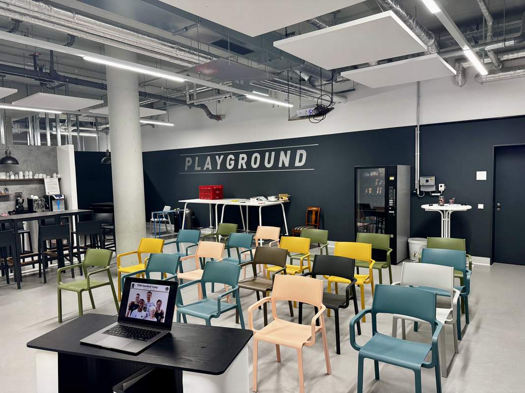 - Flexible Nutzung Veranstaltungsraums den PlaygroundIm Playground können sich Teilnehmende entspannen. Filterkaffee, Wasser und Spielmöglichkeiten wie Kicker stehen bereit. Parkplätze sind direkt vor Ort verfügbar.