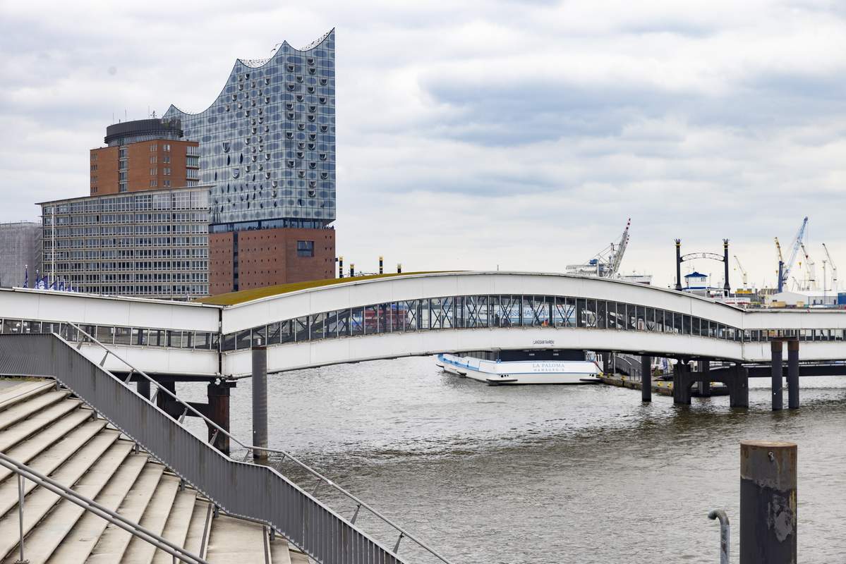 Die Elbphilharmonie – Wahrzeichen, Opernhaus, Luxushotel. Von hier aus ist es nur ein kleiner Spaziergang bis zum Ausgehviertel St. Pauli. Wir bewegen uns fernab vom Autoverkehr auf der Promenade am Wasser entlang.