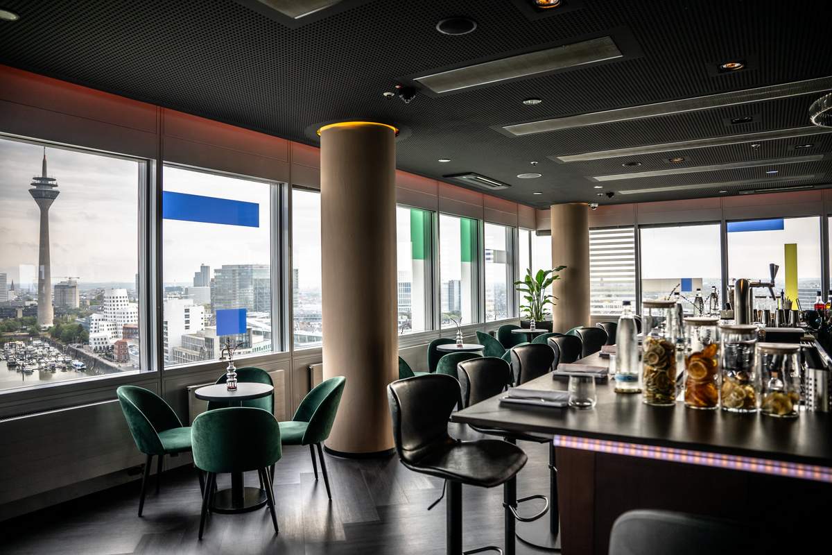 - Skyline-BlickUnvergleichbarer Aussicht aus der 16. Etage auf das Feuerwerk und einem spektakulären Panorama über den Medienhafen und die Skyline Düsseldorf