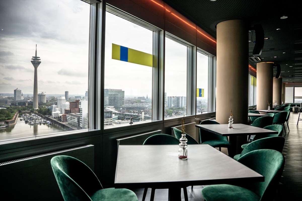 - Skyline-BlickUnvergleichbare Aussicht aus der 16. Etage und einem spektakulären Panorama über den Medienhafen und die Skyline Düsseldorfs