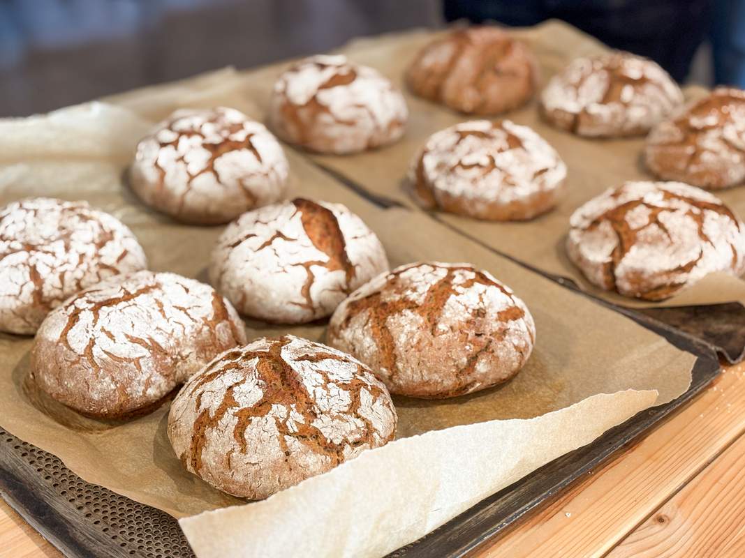 Nach einem herzlichen Empfang mit Welcome Drink startet ihr mit einer theoretischen Einführung zu Sauerteig, Mikroorganismen und Teigherstellung. Im Sauerteig Brotbackkurs backt eure Gruppe zwei verschiedene Brote: ein aromatisches Kartoffel-Dinkel-Brot mit Kräutern und Gewürzen sowie ein luftiges Weizenbrot mit mildem Geschmack.
