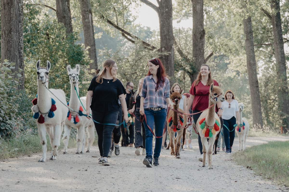 Die Flauschige Gauditour ist ein besonderes Teamerlebnis für Unternehmen, die ihren Mitarbeitenden eine wohltuende Pause vom Alltag schenken möchten. Bei einer geführten Wanderung mit Alpakas und Lamas erleben die Teilnehmenden die beruhigende Wirkung der Tiere und die Kraft der Natur – ganz ohne Ablenkung durch Programmpunkte oder künstliche Animation.