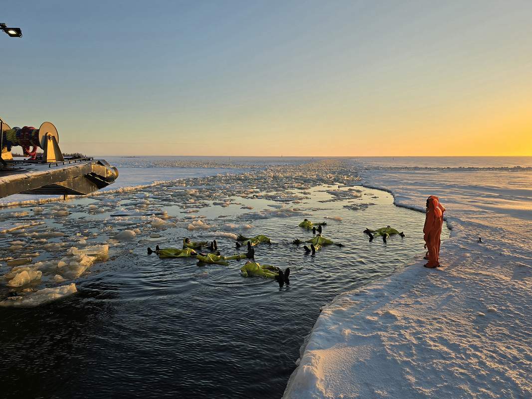 Eisbrecher-Fahrt, Eis-Floating, Hundeschlittenfahrt und Sauna zwischen Finnland und Schweden