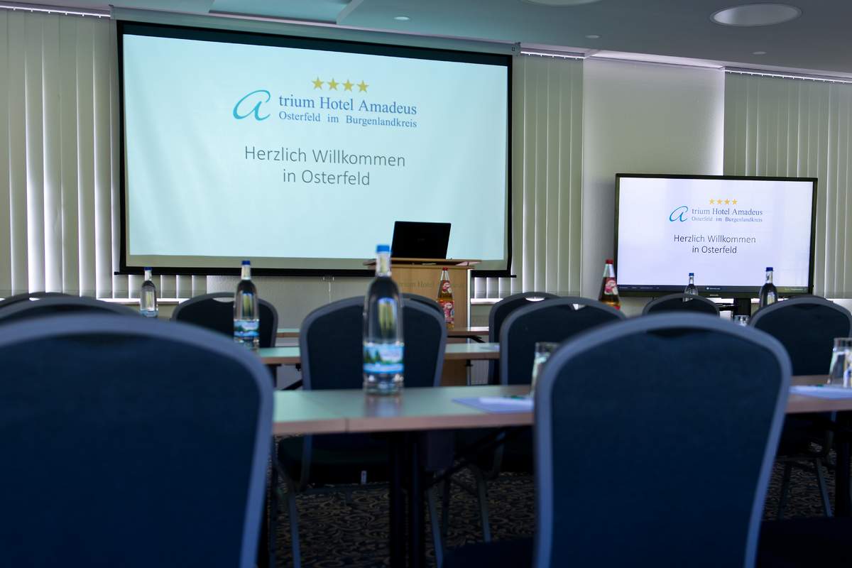 Das Atrium Hotel Amadeus in Osterfeld ist das größte Hotel im Burgenlandkreis. Es ist ein privat geführtes Vier-Sterne Hotel und liegt in Osterfeld, im Herzen Deutschlands. Sie erreichen uns in nur drei Minuten von der A9 Berlin-München. In nur 10 Minuten vom Hermsdorfer Kreuz, der A4 Dresden-Frankfurt/Main und in 25 Minuten vom Flughafen und der Messe Leipzig.