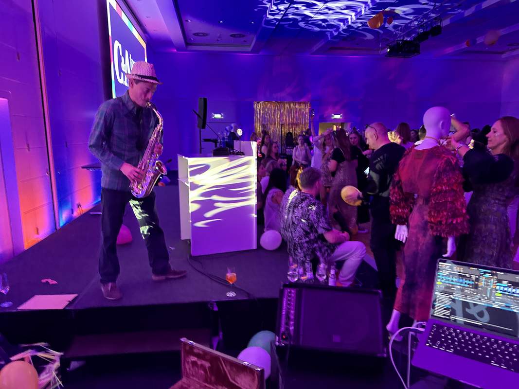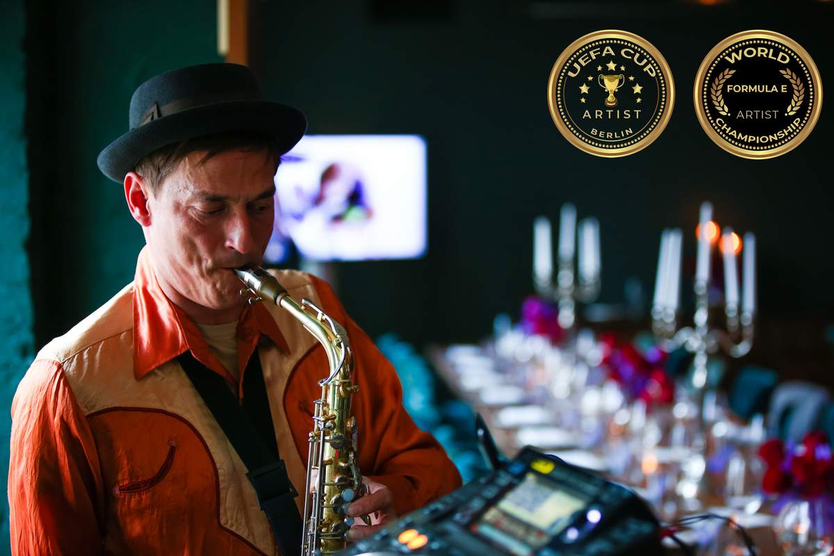 Zum Empfang gibt es einen entspannten DJ Mix mit Live Saxophon Einlagen in einer Weise dass die Gäste sich gut unterhalten können. später am Abend wenn gewünscht auch ein DJ Mix zum Tanzen mit Saxophon Life