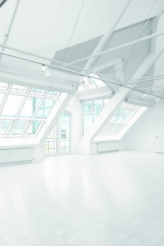 Ein großer, lichtdurchfluteter und multifunktionaler Raum für individuelle Konzepte, Ausstellungen, Veranstaltungen, Tagungen, Dinner uvm. Komplett in weiß gehalten und mit breiten Fensterfronten versehen, besticht die Fläche in der 7. Etage auf 220 m² durch eine stilvolle, puristische Atmosphäre. Verschiedenste Veranstaltungsformate sind hier möglich: Von der Kollektionsvorstellung oder Produktpräsentation über Pressekonferenzen und Ausstellungen bis hin zum exklusiven Dinner. Optional können zusätzlich die allgemeinen Verkehrsflächen vom Erdgeschoss bis zum siebten Obergeschoss des Hauses in das Veranstaltungskonzept integriert werden.