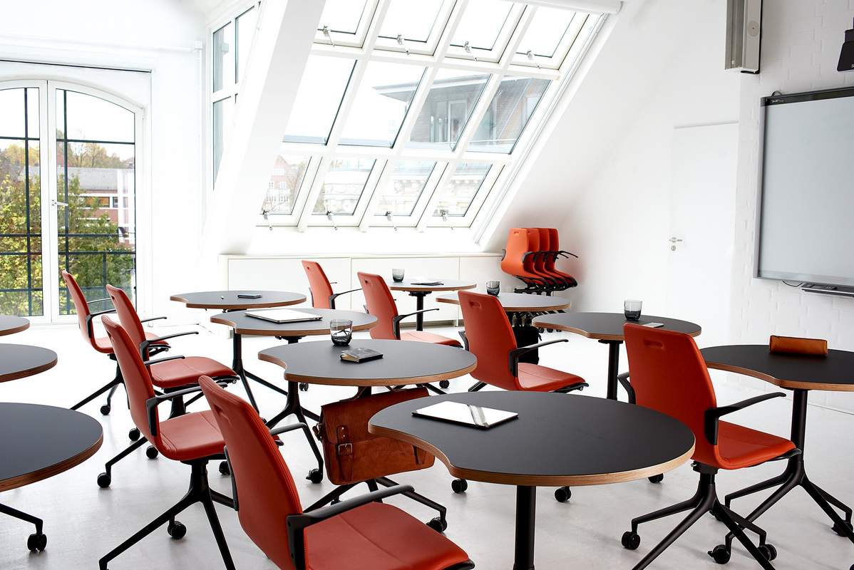Verdunklungsanlage, Beamer, Mikrofon, Audio & Flipchart, Bestuhlung & Tische/Stehtische, Garderobenständer, je ein Herren- und Damen WC