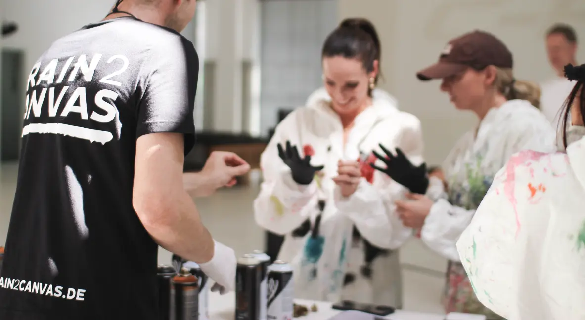 Beim Action Painting Teamevent gestaltet das Team gemeinsam ein großformatiges Kunstwerk – frei, spielerisch und mit klarer kreativer Struktur.