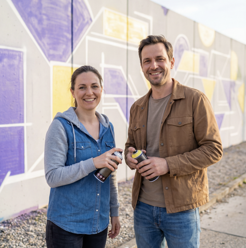 Nach einer kurzen Einführung in Technik, Farben und Sicherheit entwickelt ihr gemeinsam ein Motiv und setzt es Schritt für Schritt um. Gearbeitet wird in kleinen Teams, sodass alle eingebunden sind, ohne dass Chaos entsteht. Unsere Coaches geben klare Impulse, greifen aber nicht in das Artwork ein – das Ergebnis gehört euch.