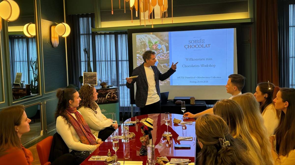 - Leitung, Moderation und EquipmentWir stellen das technische Equipment bestehend aus Schokoladenschmelzgeräten, 4k-Ultra-Short-Distanzbeamer, Leinwand, Mikrofone, Boxen sowie Topping-Buffet, Kuvertüre, Schokoladenblister, Farben, Scheren, Verpackungskartons etc. Moderiert wird das Team-Building von Buchautor Jürgen Bluhm